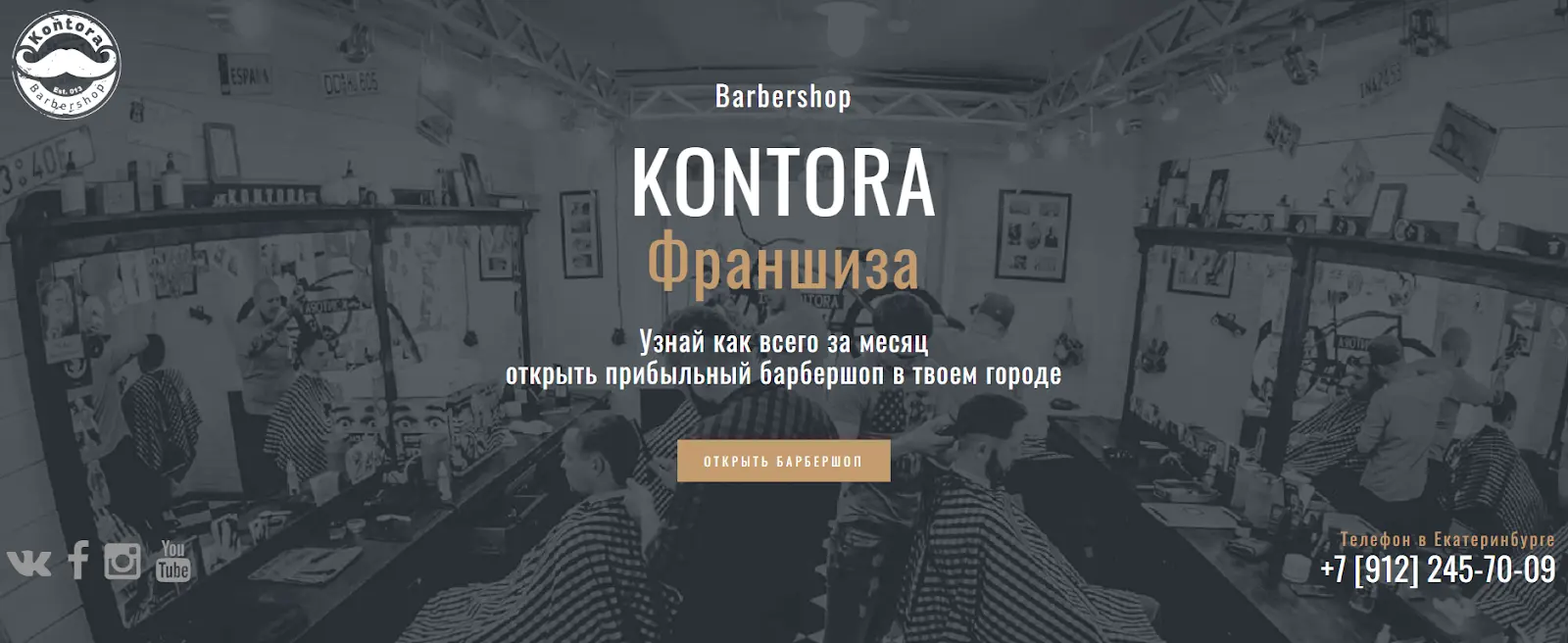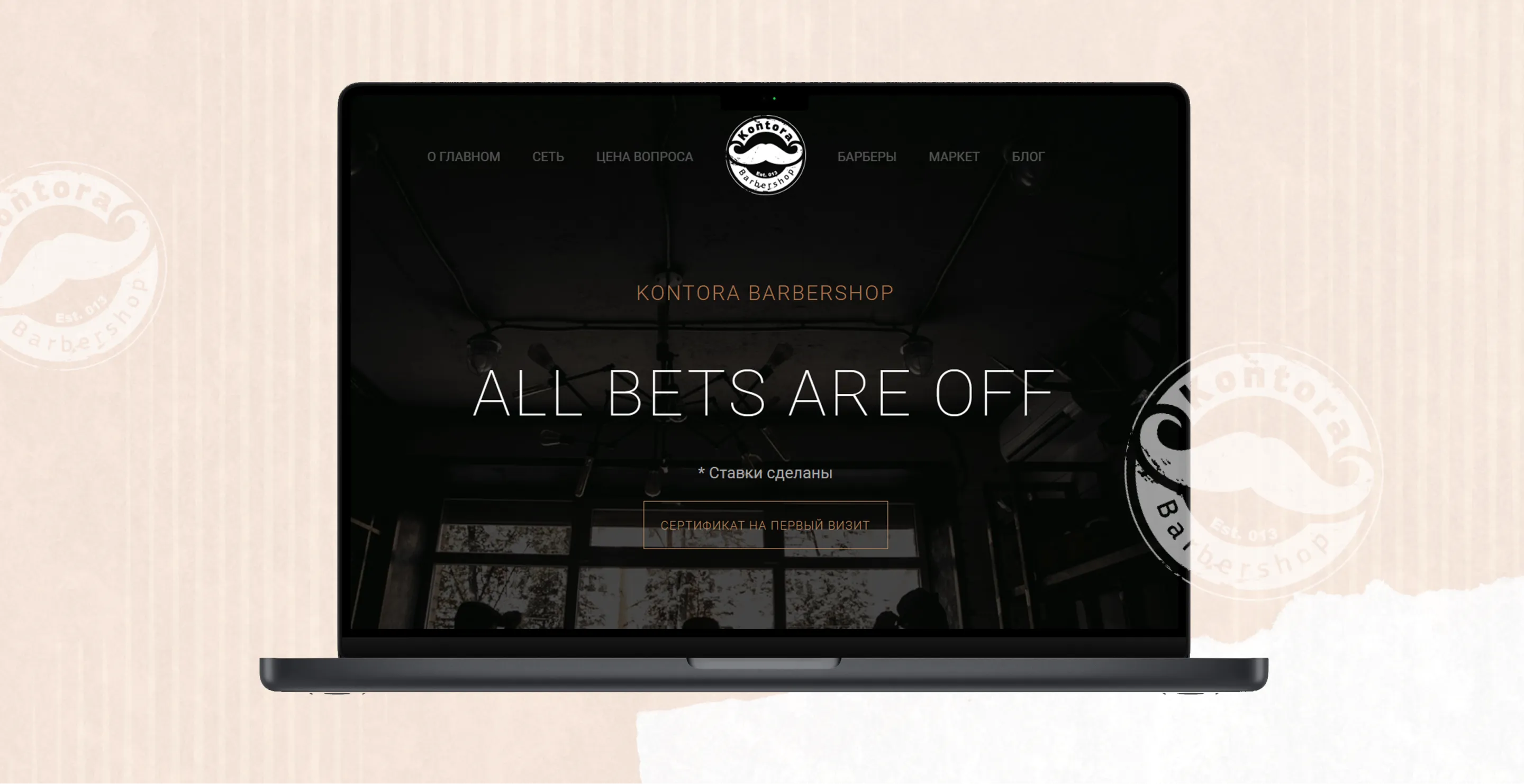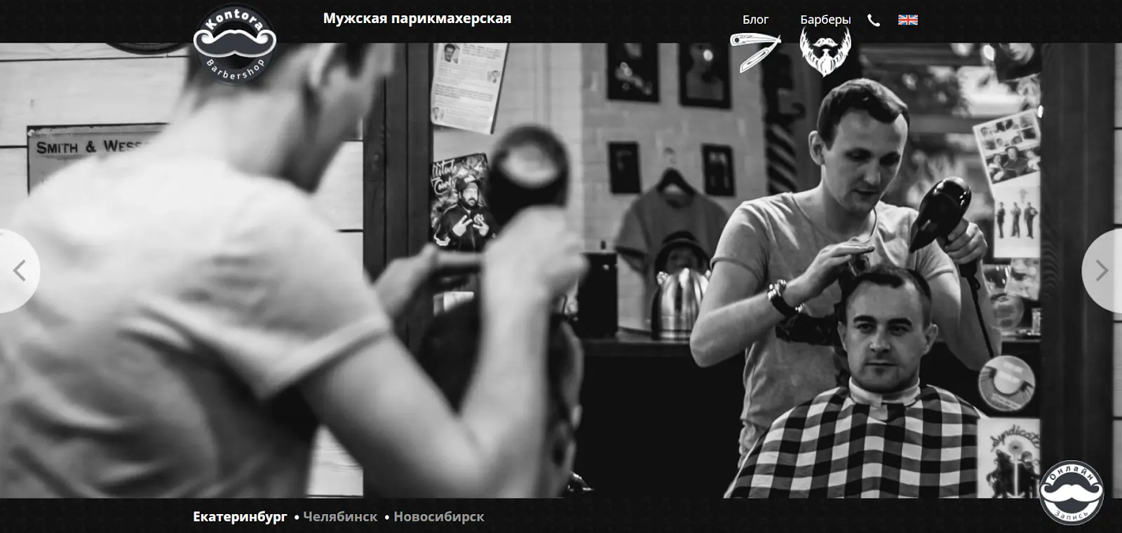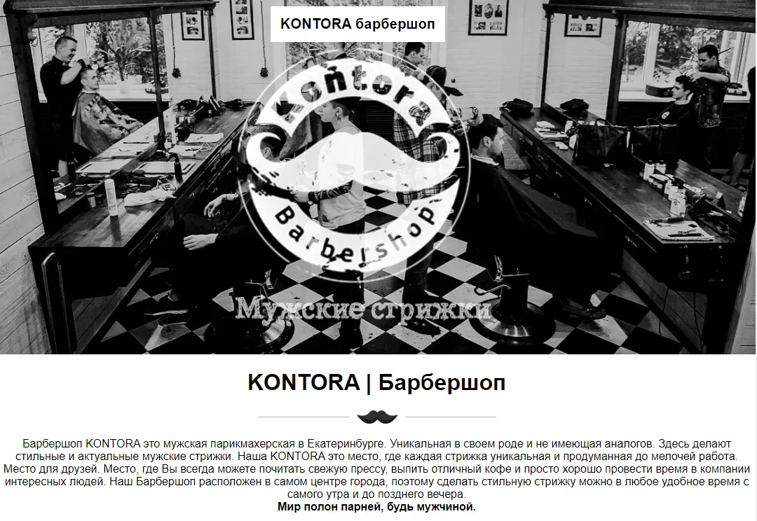 Мы подключились к проекту в марте 2016‑го. На тот момент KONTORA уже успела запустить филиалы в Екатеринбурге, Челябинске и Новосибирске. У них был сайт, но по сути это был одностраничный лендинг: логотип, несколько фотографий, список барберов и форма заявки. Такой ресурс нельзя было полноценно продвигать.