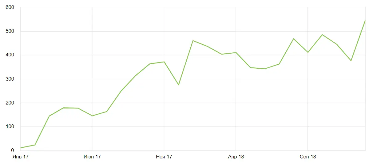 График изменения трафика из поисковых систем с апреля 2016 по октябрь 2018