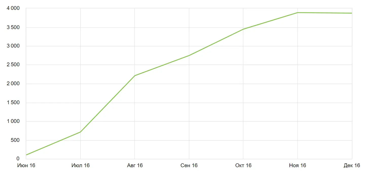 За счёт блога всего за полгода работы мы привлекли на сайт свыше 20 000 дополнительных переходов. К декабрю 2016 года общий трафик достиг 7 000 визитов в месяц, из которых почти 4 000 приходились именно на блог.