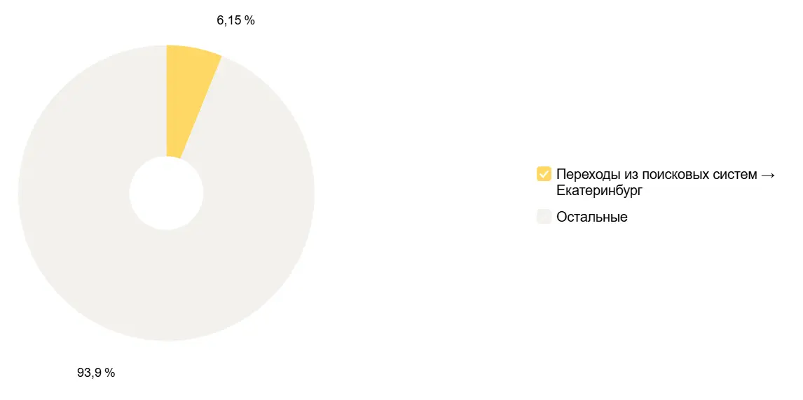 Интересно, что доля трафика из родного региона сейчас составляет всего 6% от общего объёма. Это говорит о том, что сайт успешно выходит за пределы локального рынка и начинает работать на привлечение заказчиков по всей стране, в том числе из тех регионов, где уже реализованы проекты.