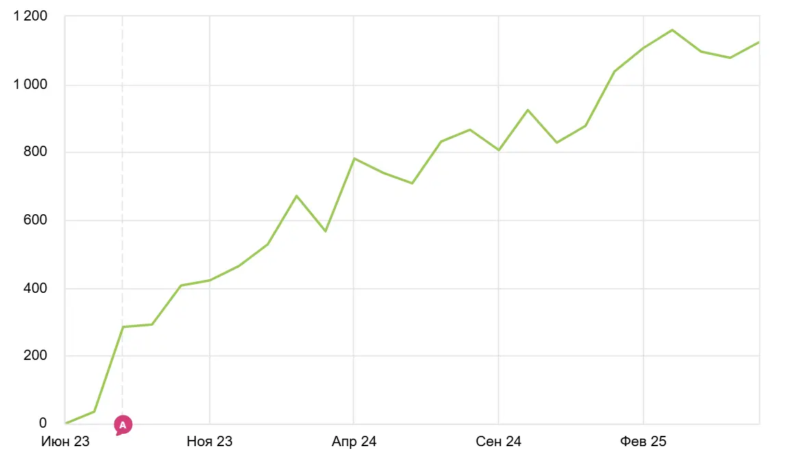 Несмотря на узкую нишу и специфическую аудиторию, трафик на сайте растёт стабильно с момента запуска продвижения. Это особенно показательно для B2B-проекта в техническом сегменте: здесь нет резких всплесков, сезонности или вирусных охватов, только системная работа с контентом, структурой и ссылками. Каждый новый материал, доработанная страница или внешняя публикация постепенно добавляют вес сайту и расширяют охват. Рост идёт не за счёт количества, а за счёт точного попадания в запросы целевой аудитории.