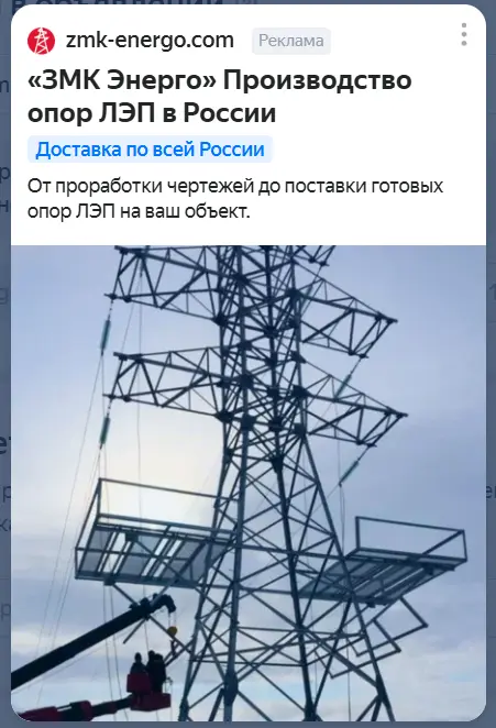Обе кампании были заточены под прямой спрос, на привлечение пользователей, которые уже ищут, где заказать опоры ЛЭП. Это дало максимальную конверсию с минимальным шумом.