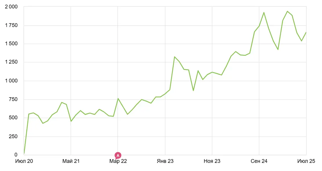 Между завершением разработки сайта и началом полноценного продвижения прошло почти полтора года. Сайт работал, приносил какой-то трафик и заявки, но не развивался. Основной поток шёл от брендовых запросов, от тех, кто уже знал компанию. Понятно, что на одном этом далеко не уедешь, нужно расти.