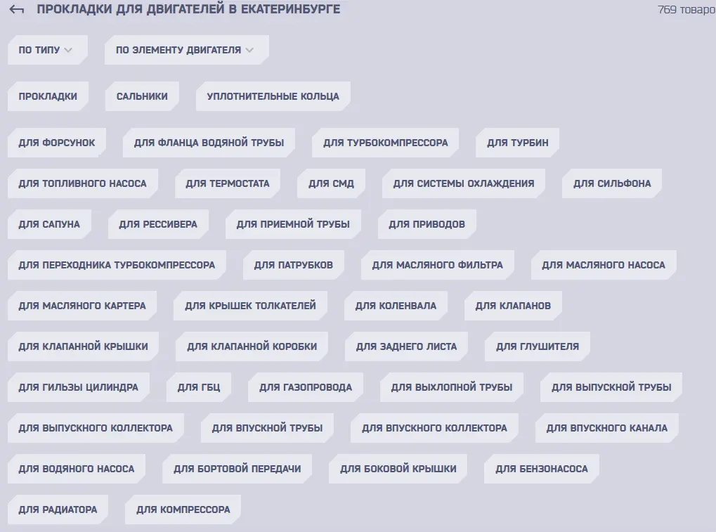 Мы пошли стандартным, но проверенным путём – копать глубже. Сначала расширили семантику: добавили ключи по типам прокладок, маркам и моделям техники, элементам двигателя. На основе этого расширили каталог товаров.