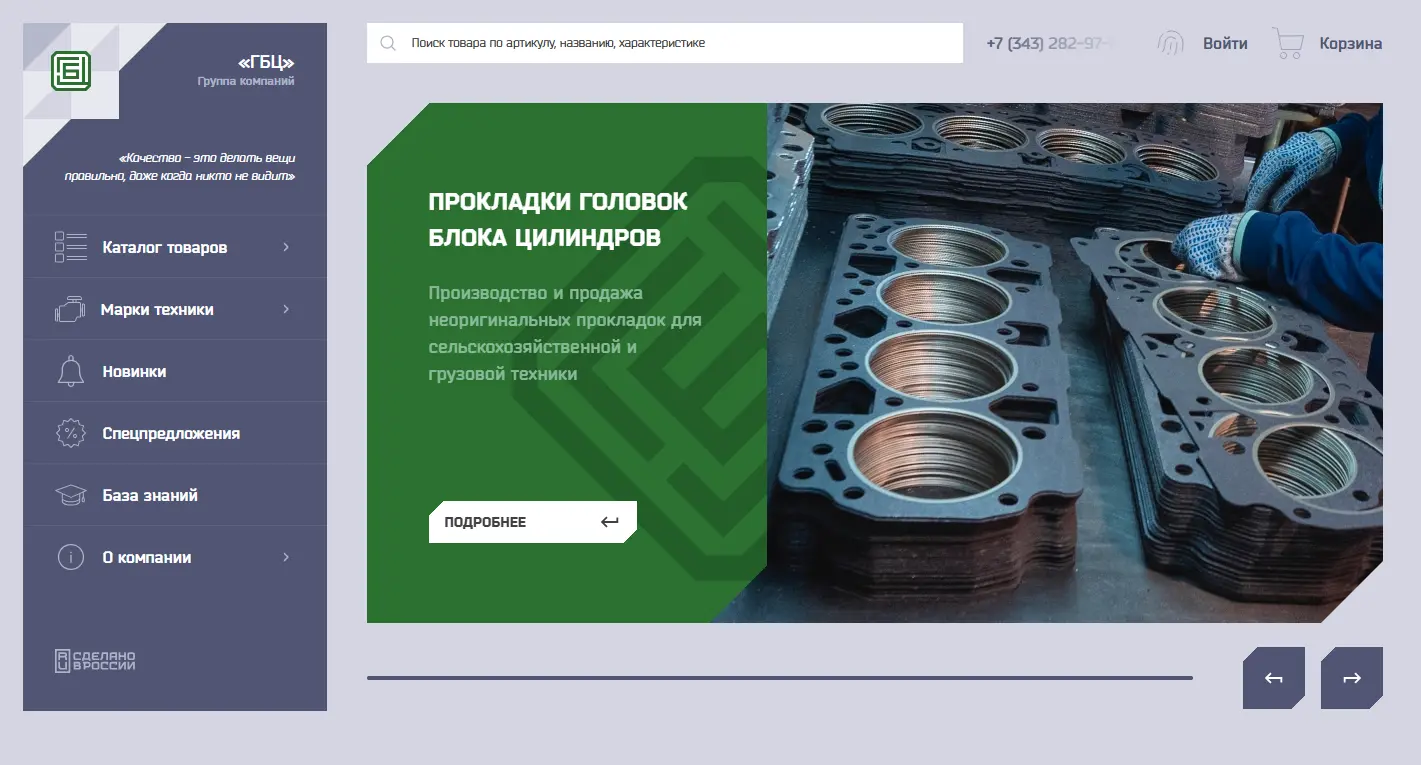 ГБЦ-Урал — компания, которая занимается производством прокладок для сельхоз и грузовой техники. Направление довольно специфическое, с чёткой отраслевой экспертизой и узкой аудиторией. В 2020 году они обратились к нам с задачей: нужен сайт с каталогом собственной продукции. Без излишеств, но с чётким функционалом под задачи оптовиков.