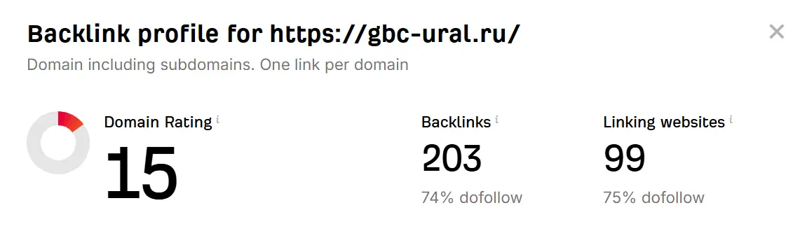 DR = 15 – отличный показатель для локального производителя с узким ассортиментом. Для сравнения, у многих похожих конкурентов в нише он ниже.