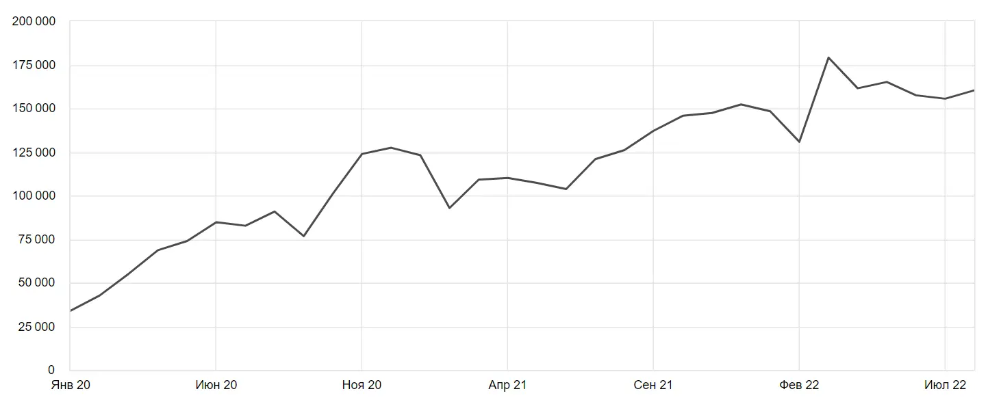 График изменения трафика со всех источников с Января 2020 года по июль 2022