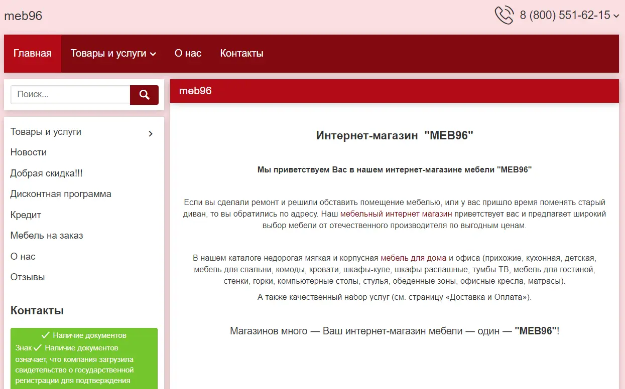 В 2015 Meb96 был небольшим региональным интернет‑магазином мебели. Никаких уникальных фишек, просто витрина с каталогом на популярной тогда CMS Joomla. Всё стандартно, без лишних функций и без чёткой стратегии развития. Но было главное – желание развиваться и готовность экспериментировать.
