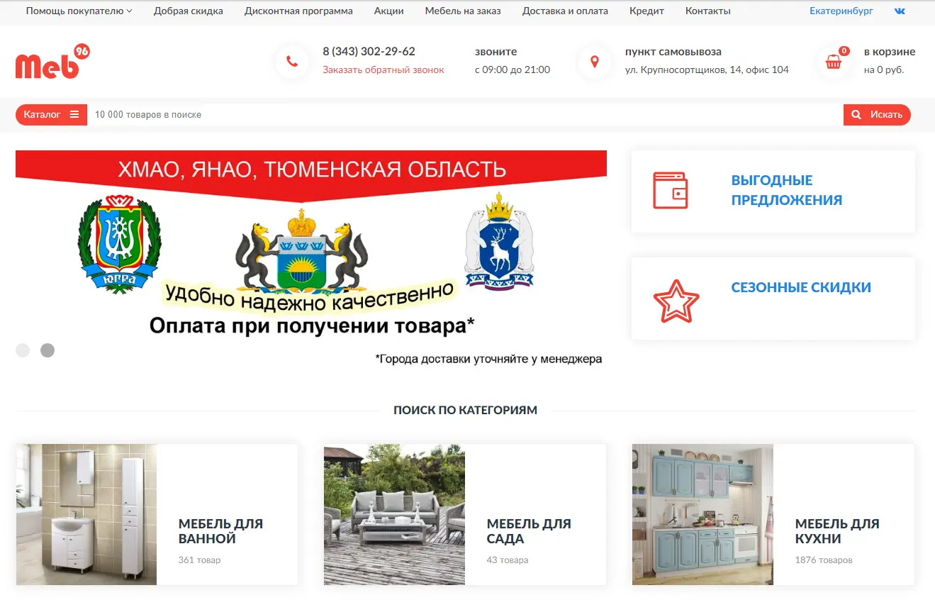 Нельзя сказать, что у Meb96 совсем не было преимуществ. Уже тогда команда клиента развивала собственную логистику и доставляла мебель по Екатеринбургу и в соседние города.