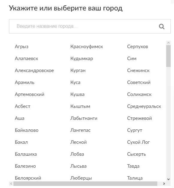 В итоге пошли по пути создания отдельных страниц каталога под каждый город. Эти страницы мы связали между собой через систему перелинковки. На каждой из них размещался блок ссылок с названиями других городов.