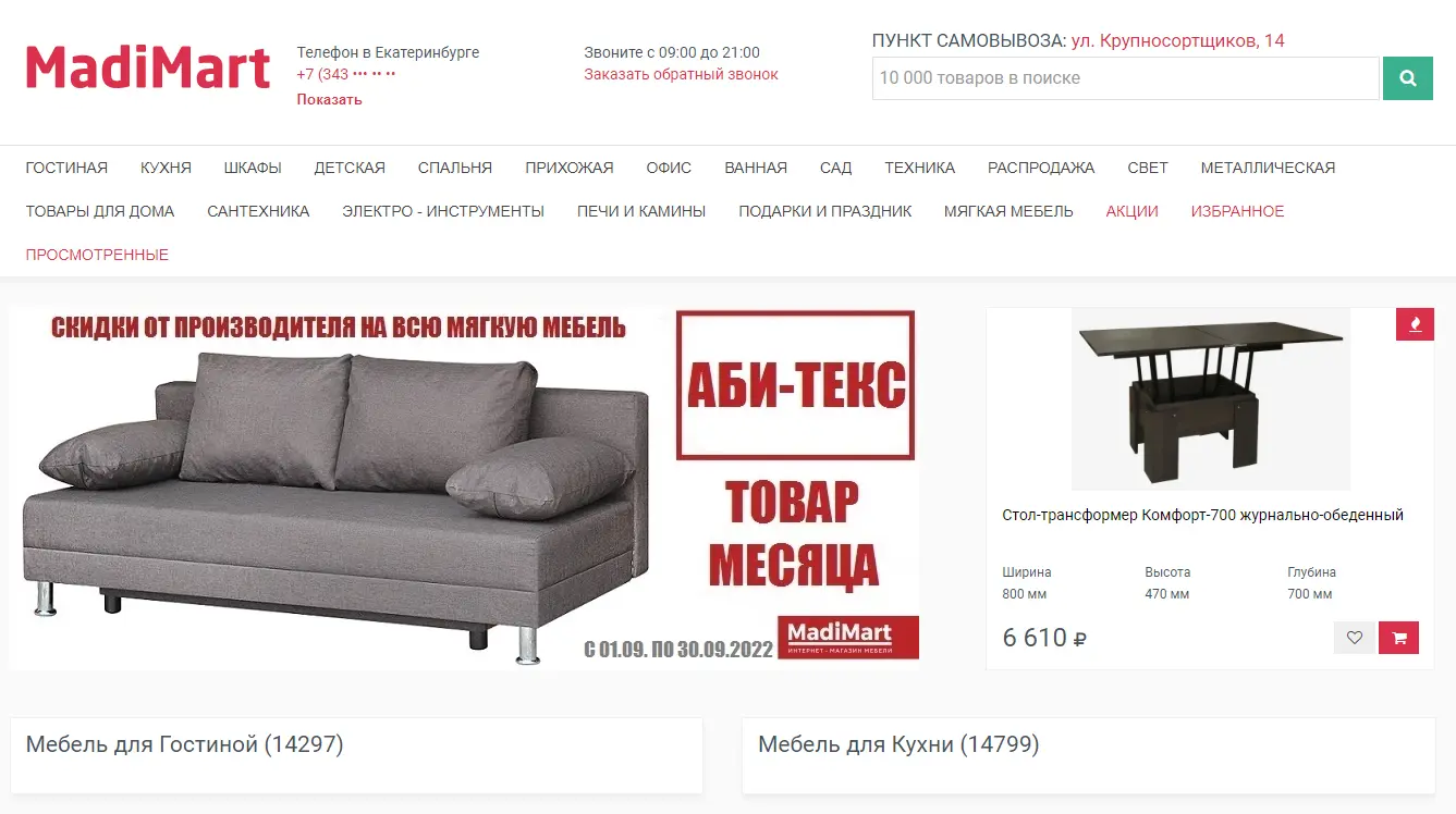 На коммерческих проектах вроде meb96 или TDMV нельзя позволить себе необдуманные эксперименты, слишком высоки риски. Поэтому мы создали отдельную площадку – Madimart. Этот сайт изначально задумывался как полигон для тестирования. Здесь мы могли безопасно отрабатывать нестандартные приёмы, проверять реакцию поисковиков и запускать гипотезы до того, как применить их на основных сайтах.
