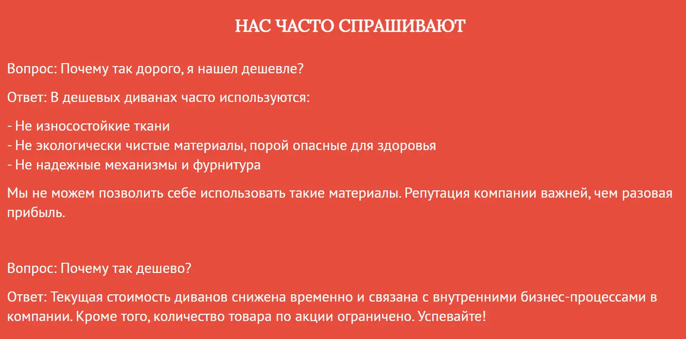 Мы подошли к текстам как потенциальные покупатели. Сами себе задали вопросы: «А мне бы что было важно знать?», «А в чём я мог бы сомневаться?»